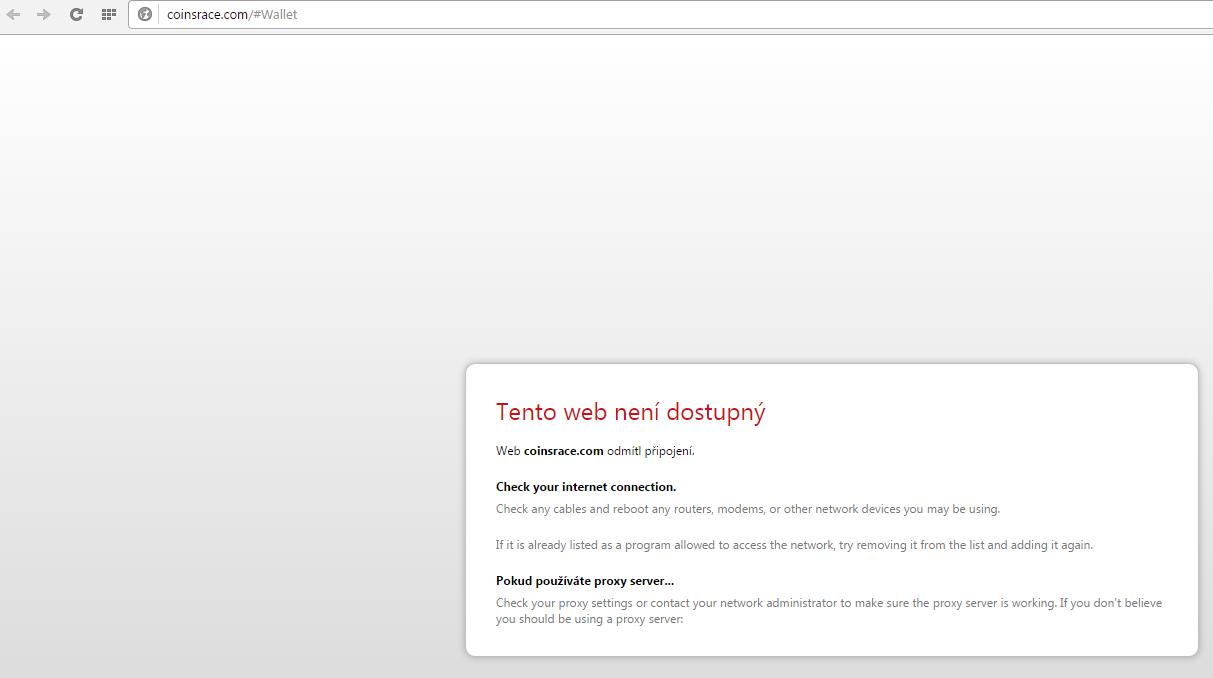 Block explorer na http://explorer.coinsrace.com/ taky nefunguje (služba je nedostupná)