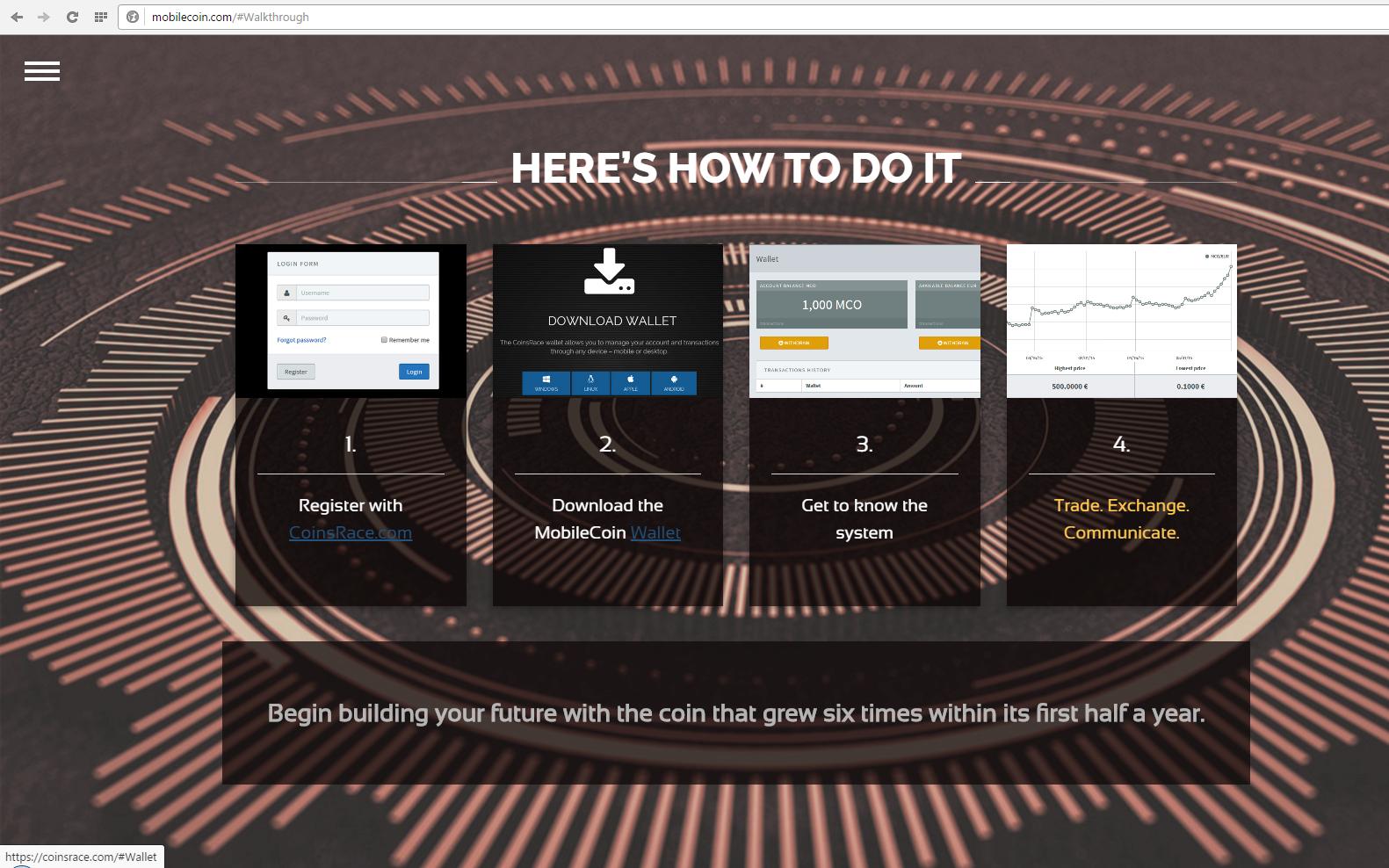 Peněženka se stáhnout nedá. (dokaz vede na https://coinsrace.com/#Wallet kde nic neběží (neběží port 443) a na http://coinsrace.com/#Wallet je jen homepage.