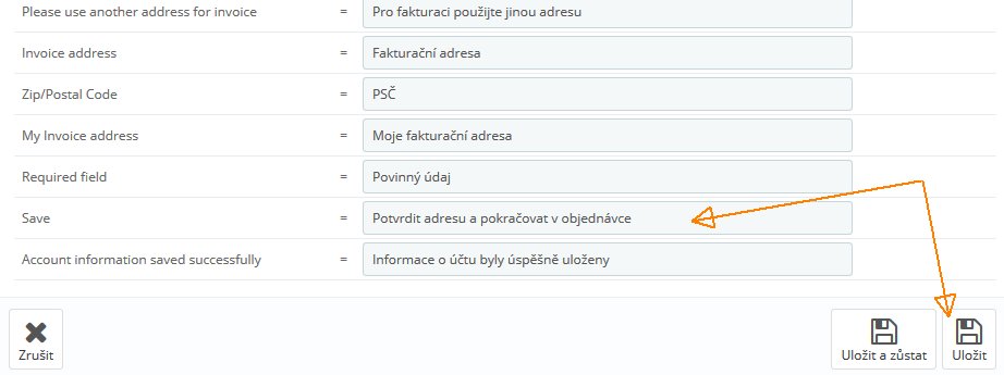 Klikněte na Lokalizace > Překlady > Vyberte šablonu > Jazyk > Potvrďte upravit > Klikněte na rozbalit vše > najděte konkrétní slovo a změňte/přeložte jej. Pokud si nejste jistí (hlavně v případě více výskytů slov ve více sekcí) v jaké sekci se dané slovo projeví, tak si zkuste za každý výskyt napsat nějaké číslo (1,2,3,4,5...) a podle toho kde se co v eshopu objeví si snadno a rychle najdete konkrétní sekci která má účinek takový jaký potřebujete. Váš případ včetně konkrétní sekce je vidět v obrázcích: